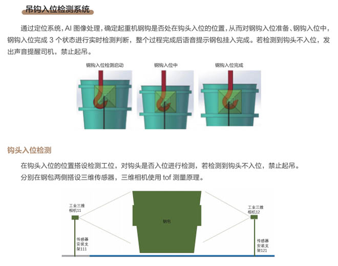 近年來,冶金行業(yè)智能化、自動化、云時(shí)代等大數(shù)據(jù)廣泛應(yīng)用,煉鋼車間是冶金行業(yè)的重點(diǎn)區(qū)域,廠區(qū)設(shè)備復(fù)雜、環(huán)境差、安全隱患多等因素更需要進(jìn)行設(shè)備自動化、智能化的升級管理、實(shí)現(xiàn)廠區(qū)無人化智慧工廠目標(biāo)的發(fā)展。起重機(jī)作為煉鋼、煉鐵、軋鋼車間的主要設(shè)備,起重機(jī)工作中對在工位操作越來越精準(zhǔn),需要駕駛員及時(shí)準(zhǔn)確觀察工位狀態(tài),由于駕駛室的位置和現(xiàn)場的工況環(huán)境影響經(jīng)常引起操作失誤,鋼包起吊安全事故頻發(fā),特別是對于鋼包掛鉤是否完整嵌入掛耳,是否進(jìn)入正確的起吊姿態(tài)沒有直接的判斷和監(jiān)控。研發(fā)起重機(jī)鋼包定位掛鉤識別管理系統(tǒng)是安全生產(chǎn)的剛性需求。
